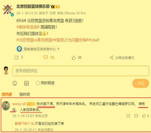張慶鵬的北控隊(duì)已經(jīng)取得3連勝,但球迷仍然希望換楊鳴執(zhí)教,雙方也確實(shí)有接觸!