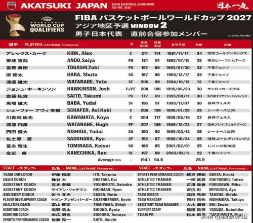 另外值得一注意的是日本男籃平均身高只有1米94,平均年齡達(dá)到了28.9歲,大部分都是已經(jīng)進(jìn)入到成熟階段的運動員為主,從集訓(xùn)時間可以看到大幅度減少,2月17日集結(jié)后,2月26日就主場迎戰(zhàn)中國男籃,僅僅一周多時間。