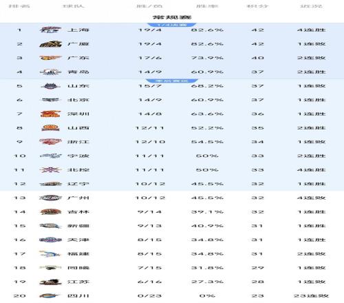 本輪比賽結(jié)束后,聯(lián)賽積分榜出現(xiàn)了新的格局,上海隊(duì)?wèi){借本場(chǎng)勝利,戰(zhàn)績(jī)提升,在排名上實(shí)現(xiàn)了反超,廣東隊(duì)則因連敗,排名有所下滑,中游集團(tuán)的競(jìng)爭(zhēng)依舊激烈,青島、浙江等隊(duì)的勝負(fù)差非常接近,榜尾區(qū)域,多支球隊(duì)勝場(chǎng)數(shù)接近,保級(jí)形勢(shì)錯(cuò)綜復(fù)雜。