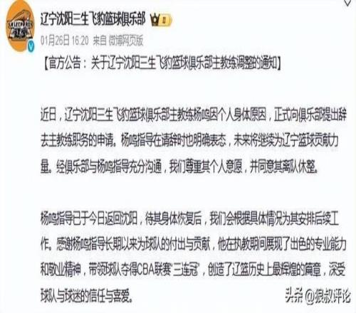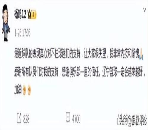 1月26日,遼寧男籃官方社媒發(fā)文,楊鳴正式卸任遼籃主帥的位置,對此,楊鳴表示:最近球隊的表現(xiàn)真心對不住球迷們的支持,讓大家很失望,我非常內(nèi)疚和慚愧。