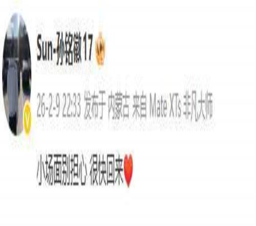 2月9日22時(shí),傷情確診后,孫銘徽在社交媒體發(fā)布一條僅10字的動態(tài):“小場面別擔(dān)心,很快回來。”沒有抱怨,沒有煽情,沒有自憐。這條微博,被轉(zhuǎn)發(fā)超12萬次,評論區(qū)滿是“等你回來”“加油,銘徽”“浙江需要你”。