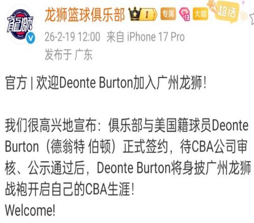 進(jìn)入窗口期之后,更換外援成為CBA球隊(duì)的工作重點(diǎn),本賽季成績(jī)不錯(cuò)的廣州男籃也裁掉了第一階段的大外援托馬斯,他們官方宣布和曾經(jīng)在NBA打球的伯頓完成了簽約,但廣州龍獅應(yīng)該還會(huì)補(bǔ)充外援,畢竟現(xiàn)在的三名外援都是外線。
