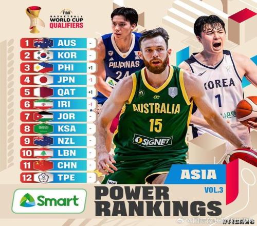 世預(yù)賽第二窗口期亞洲區(qū)實(shí)力榜:中國(guó)男籃第11,僅高于中國(guó)臺(tái)北