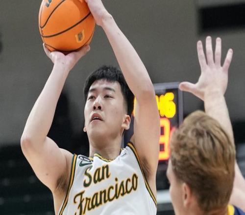 中場休息回來,舊金山大學(xué)持續(xù)被壓制,也是逐步被對手拉開比分差距。不過王俊杰的表現(xiàn)極為給力,他持續(xù)里突外投得分,尤其是接連外線三分命中,成為舊金山大學(xué)的進(jìn)攻箭頭人物之一。