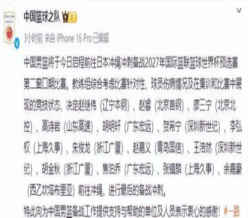 中國男籃14人大名單終于官宣!郭士強帶六名后衛(wèi),內(nèi)線短板太明顯