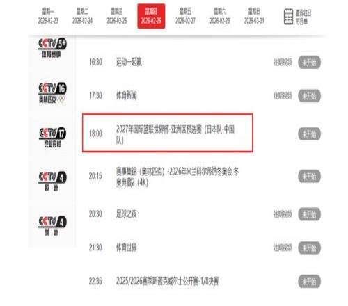 根據(jù)賽程的安排,CCTV5直播將在2月26號晚上18:00全程直播,國內(nèi)球迷們有福了。
