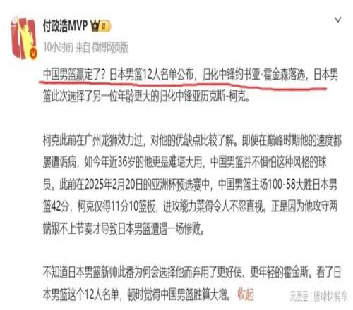 北京時間2月26日,男籃世預(yù)賽小組賽將正式打響,中國隊將在客場挑戰(zhàn)日本隊。這一場比賽對于中國隊極為重要,事關(guān)世界杯資格,中國隊上下也是極為重視。反倒是中國隊的競爭對手日本隊,他們在上一個窗口期拿到兩連勝后,球隊上下已經(jīng)開始有點飄了。不僅有點輕敵,而且,他們甚至連歸化中鋒霍金森都不帶,沒有了這個內(nèi)線大殺器后,中國隊客場對陣日本隊這一戰(zhàn),似乎已經(jīng)穩(wěn)操勝券——贏定了!