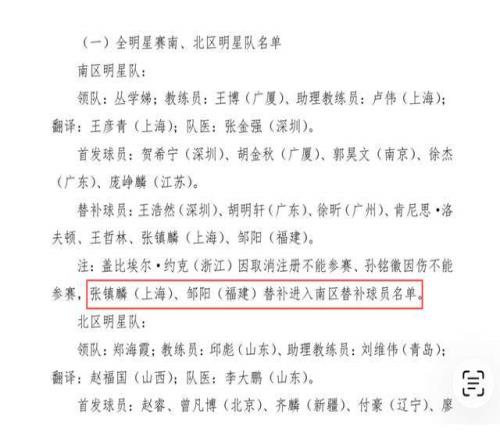 官宣!CBA全明星換人,張鎮(zhèn)麟撿漏,1人意外頂上,球迷為何不買賬