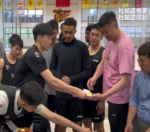 準(zhǔn)備活動(dòng)結(jié)束,杜鋒還是獲得了足夠的尊重。李文昊特地切了一塊蛋糕給杜鋒,這就是杜鋒在隊(duì)內(nèi)的地位。之前也出現(xiàn)過(guò)年輕球員給杜鋒切蛋糕的情況,他對(duì)于年輕球員的幫助還是比較大的。