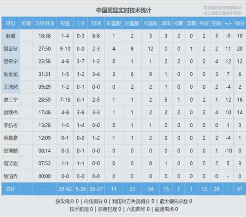 中國男籃完成15分大逆轉(zhuǎn),5打8依然拿下比賽,好樣的!胡金秋20分12板、廖三寧16分5助、趙繼偉14分2板2助2斷、賀希寧12分2助2斷、趙睿10分3板3助2斷!最后看看數(shù)據(jù),說說你的感受: