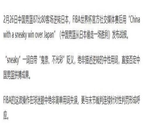 整句話翻譯過(guò)來(lái),就是“中國(guó)男籃從日本偷走一場(chǎng)勝利”。
