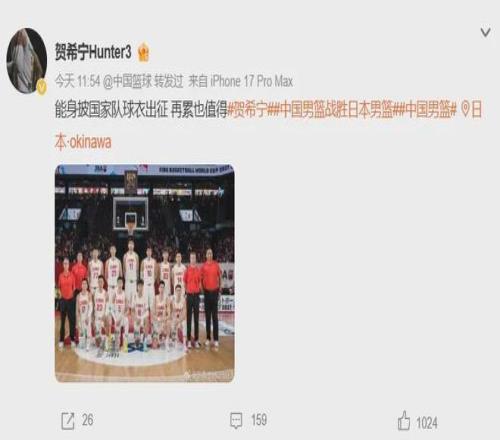 賽后接受采訪時,賀希寧動情落淚,表示這場比賽對他意義重大,希望可以讓大家重新喜歡上中國籃球。