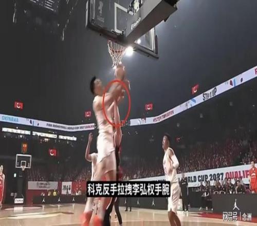 第一節(jié),賀希寧提前起跳爭搶籃板,科克手臂侵犯賀希寧起跳的圓柱體,造成肢體接觸,裁判沒吹;接著,李弘權斷掉科克手里的球,科克反手拉拽李弘權的手腕,裁判還是沒吹,給了日本隊球權。