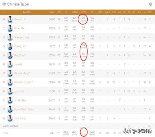 CBA三將方面,林庭謙是目前狀態(tài)最好,對(duì)陣韓國的比賽,登場(chǎng)33分鐘,10中7得到18分3籃板3助攻,陳盈駿12中5,得到13分5籃板4助攻。
