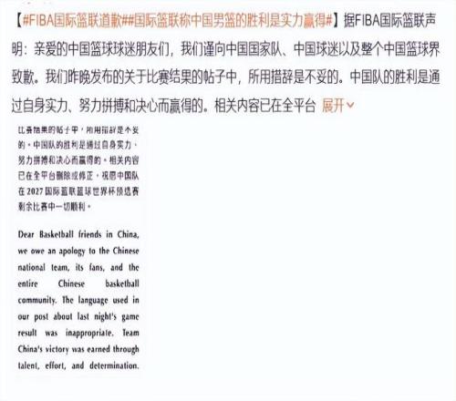 可這份道歉里,從頭到尾沒(méi)有一句提及裁判的問(wèn)題,沒(méi)有一句反思吹罰的不公,甚至連一句對(duì)中國(guó)男籃的真切歉意都沒(méi)有。