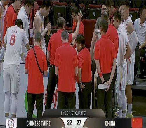 中國男籃半場落后1分:全隊無人上雙中國臺北3人得分上雙