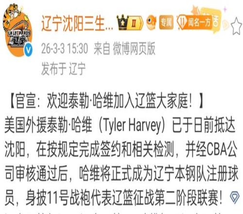 對于遼寧男籃來說,這個窗口期可以說是非常關鍵,畢竟目前他們只排名第12的位置,烏戈利用這段時間進行了戰(zhàn)術的演練,同時球隊方面也對外援進行了更換,遼寧男籃官方宣布,上賽季在上海男籃效力的哈維正式加盟。
