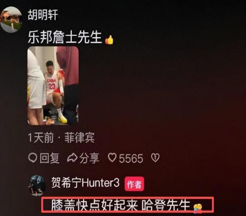 根據(jù)后衛(wèi)賀希寧的社交媒體動(dòng)態(tài),他在評(píng)論區(qū)中回復(fù)胡明軒:“膝蓋快點(diǎn)好起來,哈登先生”。