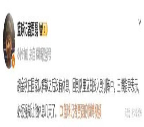 而在結(jié)束男籃世預(yù)賽后,胡金秋也跟隨中國(guó)隊(duì)回到北京,并且各自解散回家。在離開(kāi)國(guó)家隊(duì)以后,胡金秋并沒(méi)有偷懶,也沒(méi)有選擇休息,直接就回到了球隊(duì),跟隨球隊(duì)一起訓(xùn)練。而對(duì)于胡金秋這種勞模精神,作為廣廈主教練王博,他已經(jīng)心疼壞了。畢竟,廣廈隊(duì)目前就只有胡金秋這樣一個(gè)頂尖內(nèi)線,一旦他受傷了,對(duì)于廣廈而言,確實(shí)是滅頂之災(zāi)。