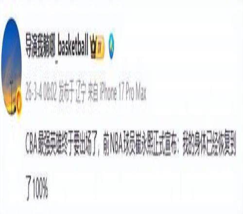 根據(jù)著名媒體人導(dǎo)演我躺哪報道,這位曾在NBA夏季聯(lián)賽嶄露頭角的年輕鋒線,通過個人社交媒體正式宣布:“我的身體已經(jīng)恢復(fù)到了100%?!倍潭桃痪湓挘拖褚活w投入湖面的巨石,瞬間在籃球圈激起千層浪。而更讓球迷熱血沸騰的是,他的復(fù)出首秀,就要對陣聯(lián)賽中的勁旅新疆隊。