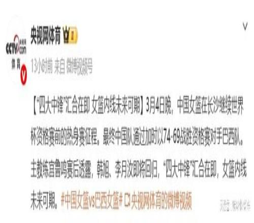 中國女籃最強陣容出爐!四大中鋒聯手出擊:宮魯鳴要橫掃世預賽了