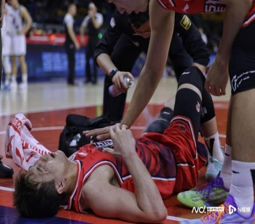 郭艾倫在3月5日的CBA比賽中重傷倒地,痛苦不已。南都N視頻記者 黎湛均攝