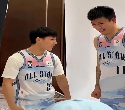 在拍攝南區(qū)全明星合影的時(shí)候,徐杰和張鎮(zhèn)麟還單獨(dú)拍了一張。攝影師還讓徐杰模仿了一下他在比賽中怒吼張鎮(zhèn)麟的動(dòng)作,然后又讓張鎮(zhèn)麟模仿了一下他是如何回應(yīng)的。兩人模仿得惟妙惟肖,引發(fā)了周?chē)说拇笮Α?duì)于這件事,很多球迷應(yīng)該非常清楚。當(dāng)時(shí)張鎮(zhèn)麟還在遼寧男籃效力,徐杰在張鎮(zhèn)麟的防守下打進(jìn)了一個(gè)難度非常大的球,進(jìn)球后的徐杰非常興奮,直接怒吼了張鎮(zhèn)麟。在后面的比賽中,張鎮(zhèn)麟進(jìn)球后也對(duì)著徐杰怒吼了回去。