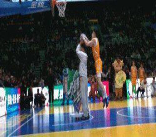 他的第二扣還是飛人動(dòng)作,這一次一口氣飛躍5人完成雙手反扣,但只拿到49分,給出9分的是中國(guó)籃球名人堂女籃成員李昕。