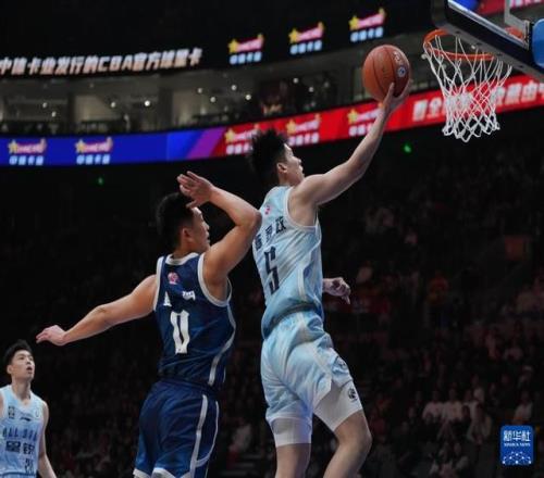 3月7日,CBA星銳隊球員謝智杰(左)在比賽中突破。新華社記者 孟永民 攝