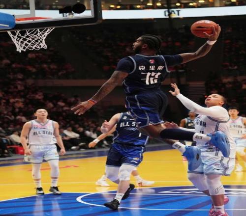 北區(qū)明星隊(duì)球員克里斯在比賽中扣籃。 新華社記者 孟永民 攝