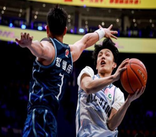 北區(qū)明星隊(duì)球員趙睿(右)在比賽中突破。 新華社記者 孟永民 攝