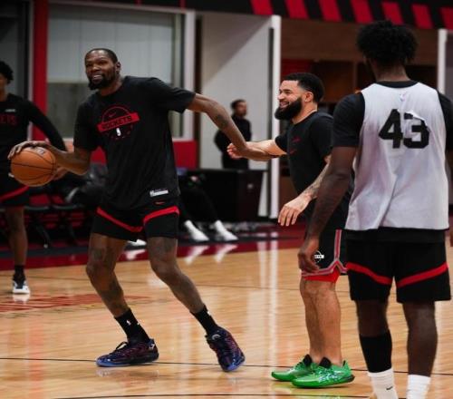 本場比賽火箭隊(duì)的第二功臣是杜蘭特,雖然這位老將24投11中,命中率一般,但他三分球9中4,罰球9中7,全場也轟下了33分,并且摘下了8個(gè)籃板,送出2次搶斷。