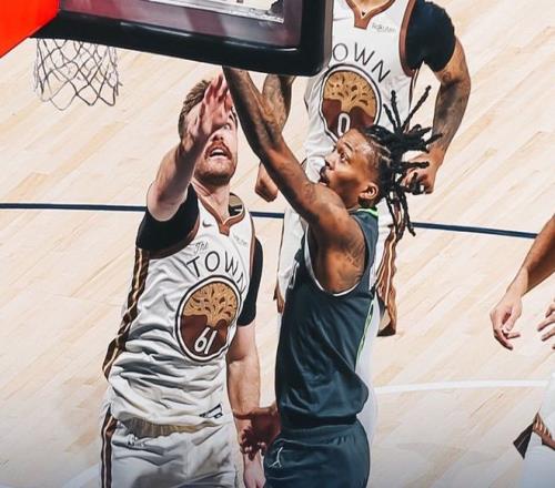 中段海蘭德三分+戈貝爾暴扣,勇士依靠博斯特和理查德止血,蘭德爾和海蘭德內(nèi)突外投,里德續(xù)上三分,老抗力都反擊造殺傷!節(jié)末戈貝爾繼續(xù)暴扣+拋投,半場結(jié)束時,勇士38-53落后,整個上半場,勇士罰球為0!進入下半場,桑托斯搶斷扣籃,迪文岑佐回應(yīng)三分,蘭德爾繼續(xù)強攻籃下,麥克丹尼爾斯三分球打停勇士。勇士進攻就依靠桑托斯和博斯特,蘭德爾得分太輕松,麥克丹尼爾斯也彈無虛發(fā)。后半段佩頓和穆迪帶隊稍稍有所起勢,但森林狼連續(xù)罰球回應(yīng)。三節(jié)打完,勇士57-75落后。