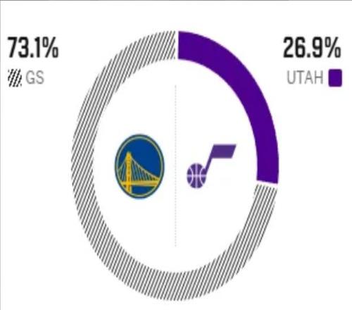 這是兩隊(duì)本賽季的第三次交手,前兩次交鋒均以勇士大勝告終,優(yōu)勢(shì)非常明顯。賽前,美媒ESPN對(duì)本場(chǎng)比賽進(jìn)行了勝率預(yù)測(cè),勇士隊(duì)勝率高達(dá)73.1%,一騎絕塵,爵士隊(duì)勝率則僅有26.9% ,還是不被外界看好。