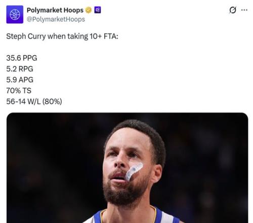 拿下這一場勝利后,當(dāng)庫里單場獲得10+罰球時,勇士戰(zhàn)績提升至56勝14負(fù),勝率高達(dá)80%,期間庫里場均轟下35.6分5.2板5.9助,真實命中率70%。