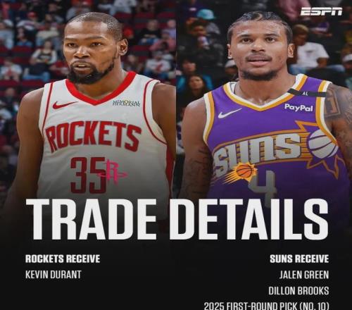 去年休賽期,火箭為了得到杜蘭特,將杰倫格林+狄龍+25年首輪第十號(hào)簽+5個(gè)次輪簽送至太陽(yáng)。