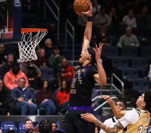節(jié)末東契奇和卡林頓對轟三分,半場結(jié)束時,湖人77-48領(lǐng)先奇才,東契奇半場就拿到26分11籃板11助攻的三雙數(shù)據(jù)。東契奇也以18分4秒拿到三雙的成績,刷新湖人隊史最快紀錄!進入下半場,老詹繼續(xù)助攻艾頓扣籃,拉拉維亞補籃,詹姆斯隨后上演一記空接背扣,又將奇才打停。奇才潰不成軍,東契奇又連續(xù)跳投命中!中段老詹一打二強行造犯規(guī)后,東契奇繼續(xù)扔三分,艾頓吃餅,湖人最多領(lǐng)先奇才38分!后半段雙方維持35分左右陷入拉鋸戰(zhàn),奇才在節(jié)末打出一波小高潮,三節(jié)戰(zhàn)罷,湖人108-84。