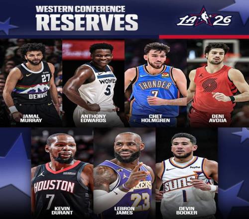 替補(bǔ)陣容西部這邊:愛德華茲、霍姆格倫、穆雷、布克、阿夫迪亞、詹姆斯和杜蘭特;東部替補(bǔ)則是:米切爾、唐斯、杜倫、杰倫-約翰遜、鮑威爾、巴恩斯和西亞卡姆。