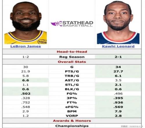 隨后,他直接曬出了詹姆斯和倫納德本賽季的數(shù)據(jù)對(duì)比。賽季至今,詹姆斯場(chǎng)均21.9分5.8板6.6助1.1斷,倫納德場(chǎng)均27.7分6.1板3.5助2.1斷。