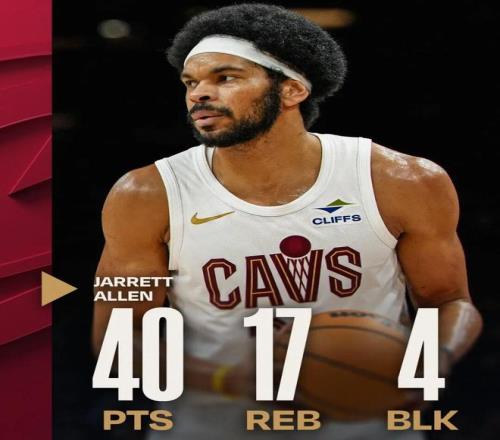 這場比賽,騎士中鋒賈萊特阿倫打出了驚人表現(xiàn):全場只打了29分30秒,投籃23中16,罰球12中8,拿下40分17籃板5籃板4蓋帽2搶斷,沒有一次失誤,正負(fù)值高達(dá)+25。