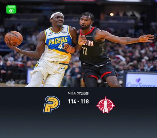 第四節(jié)步行者馬圖林拿下12分,火箭申京拿下8分,最終步行者114-118不敵火箭