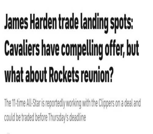 莫蘭特投射能力不足,對騎士隊而言絕非合適人選;拉梅洛-鮑爾雖在賽季初卷入交易流言,但如今黃蜂隊勢頭正盛,并不愿放手。騎士的選擇本就寥寥無幾,而哈登的出現(xiàn)恰好填補了這一空缺。