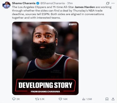 火蜜紛紛發(fā)聲樂意看到哈登回歸!休媒曬巔峰照歡迎:模擬5換1方案