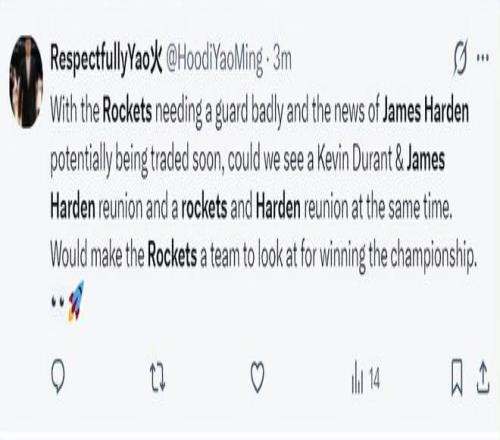 值得注意的是,這類傳聞往往還會(huì)牽扯出第三方,例如休斯頓火箭,將哈登與火箭重新聯(lián)系起來的“情懷牌”每次都能引發(fā)討論,但職業(yè)體育的運(yùn)作遠(yuǎn)比情懷復(fù)雜,火箭目前擁有杰倫·格林等需要培養(yǎng)的年輕核心,球隊(duì)方向與追求即時(shí)戰(zhàn)力的哈登并不完全吻合。