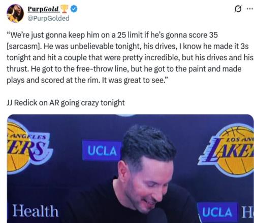賽后湖人主帥雷迪克被問到相關(guān)問題,他表示東契奇左腿筋有些酸痛,他與球隊(duì)醫(yī)療團(tuán)隊(duì)一致認(rèn)為東契奇無法重返賽場(chǎng)。