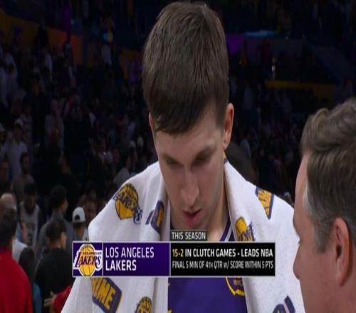 根據(jù)數(shù)據(jù)統(tǒng)計(jì),本賽季,湖人在關(guān)鍵時(shí)刻(最后5分鐘分差不超過(guò)5分)的比賽戰(zhàn)績(jī)是15勝2負(fù),領(lǐng)跑全聯(lián)盟。