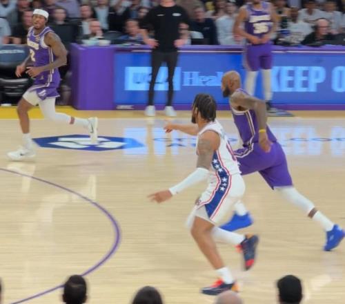第三節(jié)開場(chǎng)詹姆斯各種的喂飯時(shí)刻,二連鐵后再送兩失誤,他幫助費(fèi)城拉開到18分,但41歲的老年人終于覺醒了,身先士卒從防守做起還完成一個(gè)2+1,這一節(jié)詹姆斯3中1拿3分3助攻1蓋帽2失誤,三節(jié)9中2拿7分8助攻6失誤。