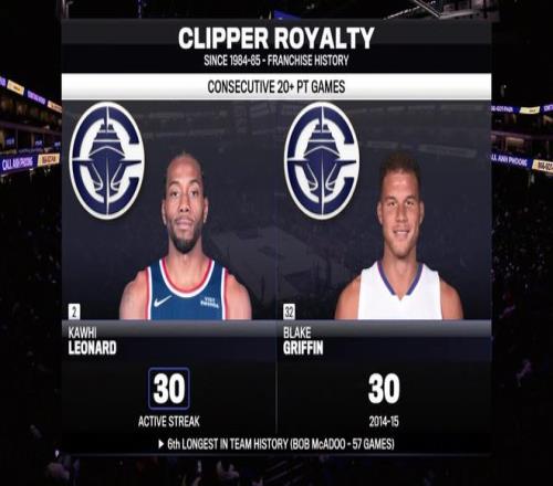 國王隊的蒙克得到9分;快船隊的萊納德得到14分、4個籃板和3次助攻,科林斯得到10分和5個籃板。