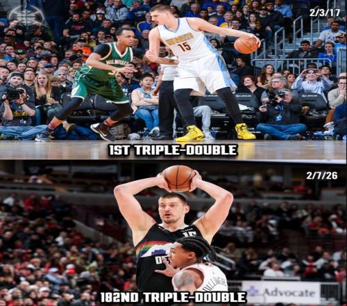 掘金官方曬出了約基奇第一次三雙-第182次三雙的時(shí)間跨度,2017年2月3日-2026年2月7日,換言之約基奇182次三雙只用了3292天歷史最快。