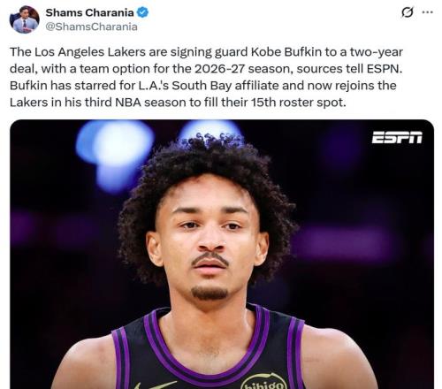 Shams率先曝出消息,指出湖人與巴夫金簽下兩年合同,第二年為球隊選項。